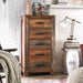 GALANTHUS Chest, 23 1/2"L X 17"W X 45 1/4"H, 93.44lbs. Variations in the wood grain color make this five-drawer chest a handsome addition to any rustic room decor. Made of solid wood mango, the piece is durable and resistance to water damage. The front panel is designed like a picture frame with each corner mitered and joined masterfully for a seamless look. The drawer handles are metal and finished in matte for that trendy barnyard look.
