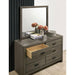 ROANNE Dresser, 47 1/4"W X 16 3/8"D X 31 5/8"H, 115.7lbs. The perfect juvenile-sized dresser for the young person with maturing tastes. With a gray wood grain finish and black drawer pulls, this represents a new standard for the youth segment. Your kids will appreciate just how well this dresser accommodates them.