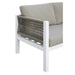 SASHA Patio Sectional, 111 1/2"W X 84 1/2"D X 26 1/2-34 1/2"H, 172.7lbs. Designed for the outdoors, this sectional comes in an unobtrusive mix of light taupe and white colors, which allows it to be placed tastefully on any porch or patio.