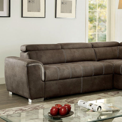 MOHLIN Sectional, Taupe, 118 1/2"L X 63 3/4"W X 38"H (SEAT HT: 20", SEAT DP: 23 1/2"), 297.64lbs. Unique features make this sectional stand out fro...