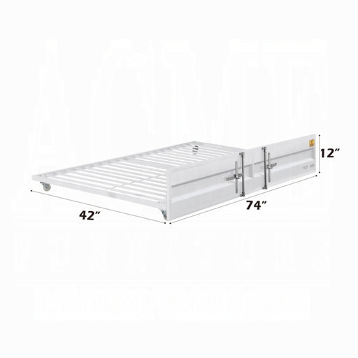 ACME Cailyn Trundle (Twin), White, 73" x 39" x 4"H, 19lbs. The roll-out trundle unit features superior quality metal for durability and provides p...